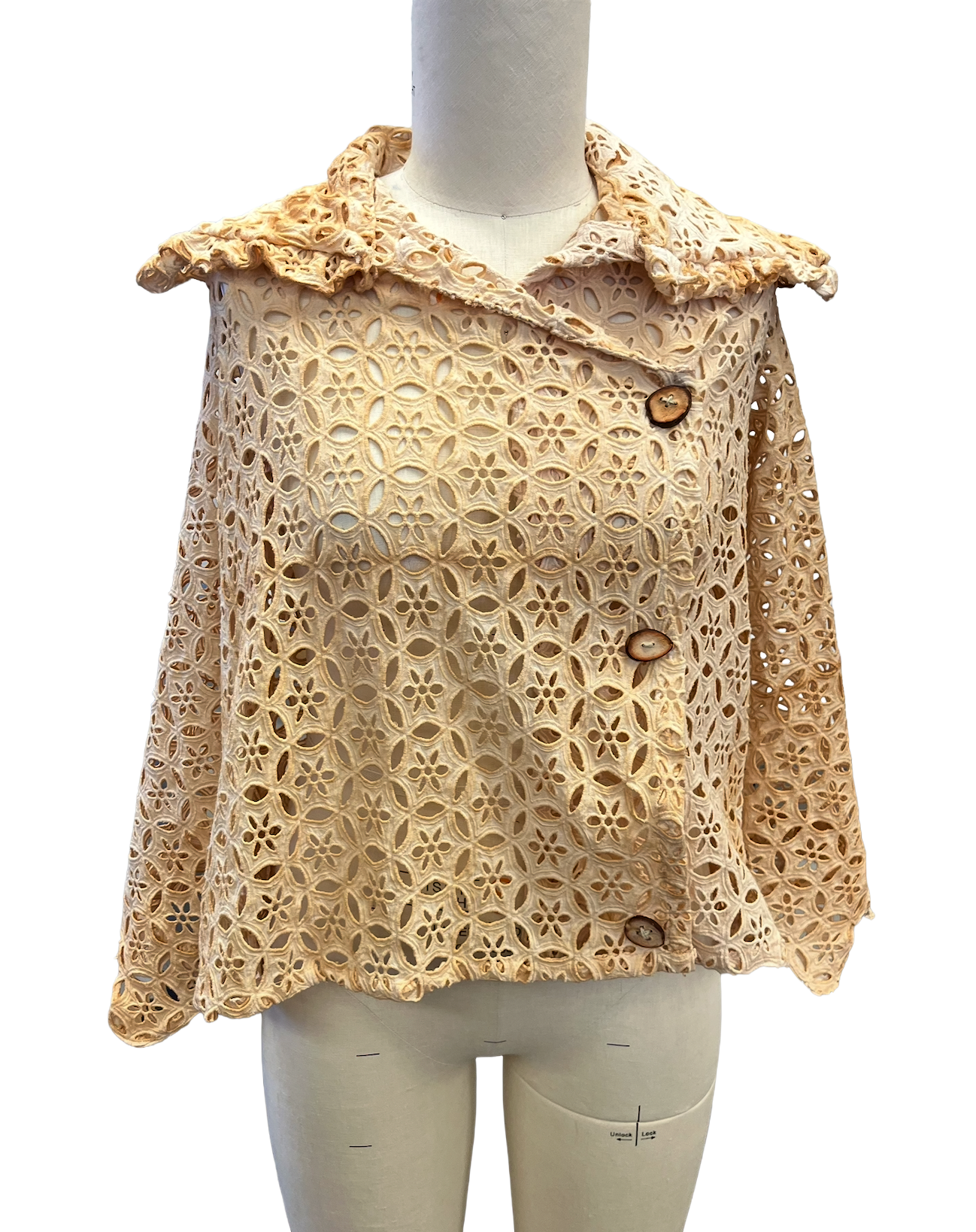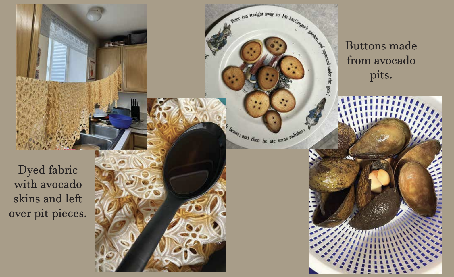 This garment is dyed using avocado skins, creating a warm, natural hue without the use of synthetic chemicals. The avocado pits are repurposed into hand-crafted buttons, ensuring that every component from fiber to fastening is 100% natural and biodegradable. Nothing goes to waste, and the entire piece can return to the earth at the end of its life. This innovative approach to closed-loop design was recognized with a $200 Sustainability Award from Cotton in the Classroom.